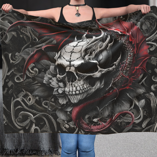 Skull With Dragon Spirit - Polar Fleece Blanket
