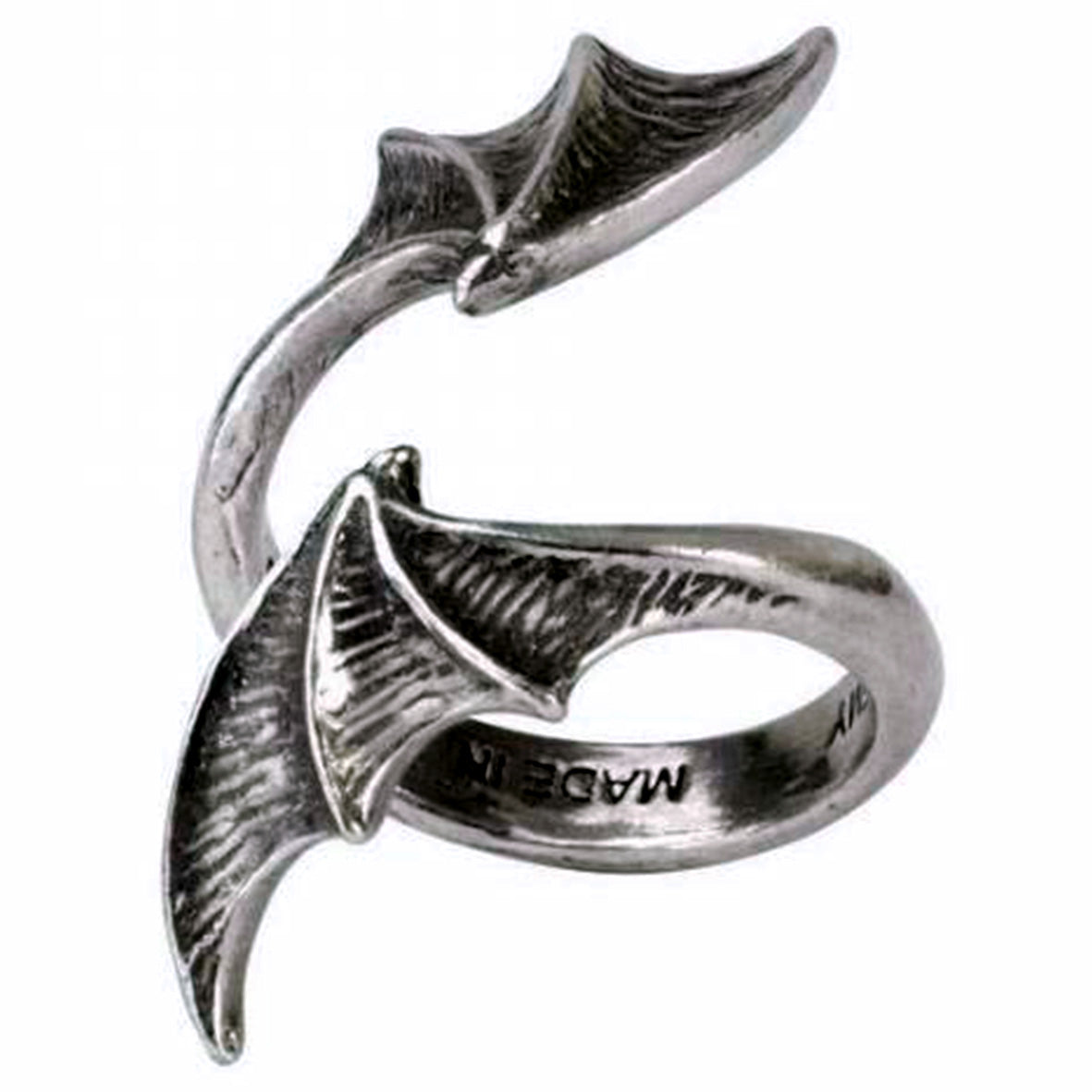 Nocturnal stirrings, returning from the grave in search of a lost lover, the creature roams. Show your love for the ultimate creature of the night with this statement wrap ring. A unique pewter bat wing wraps around your finger.