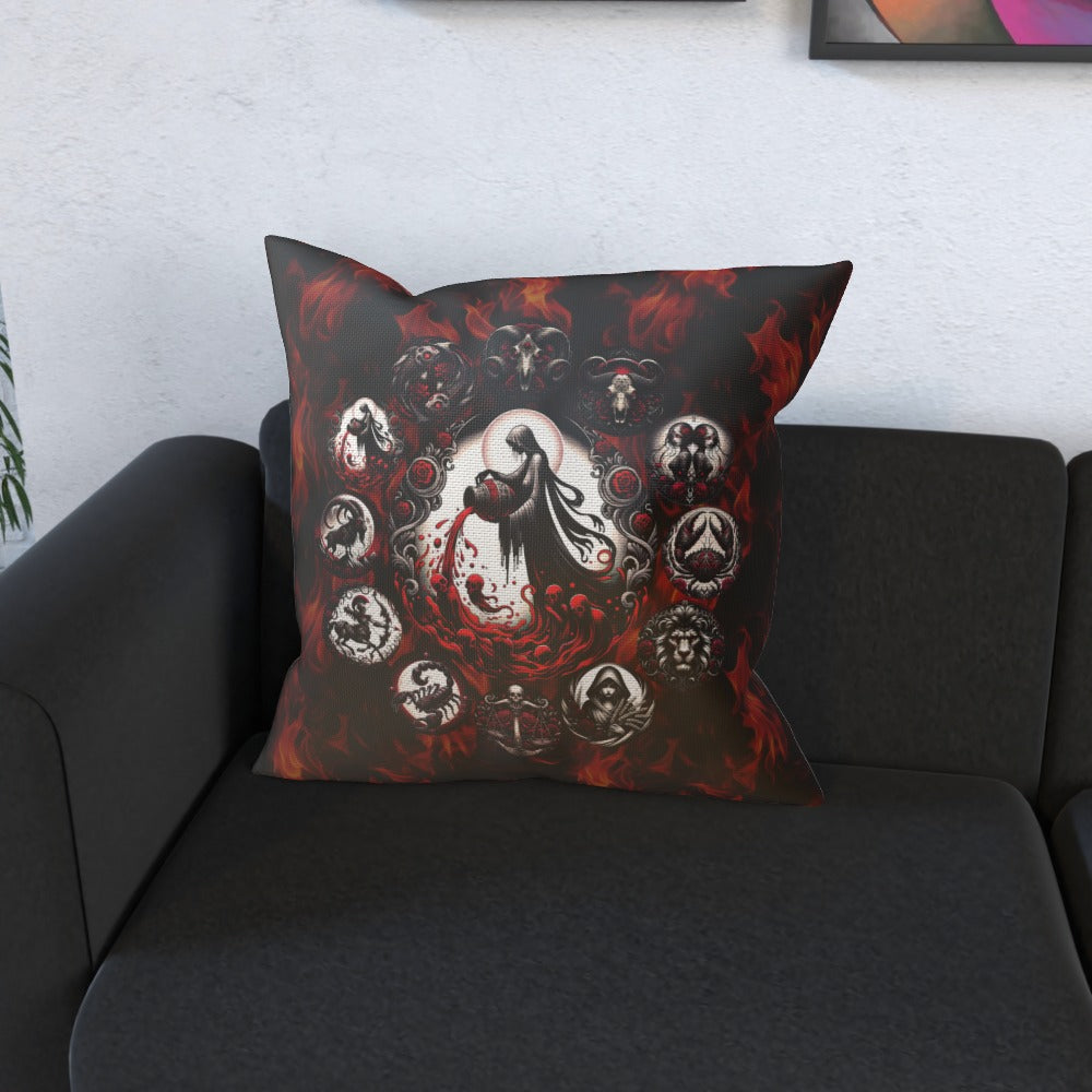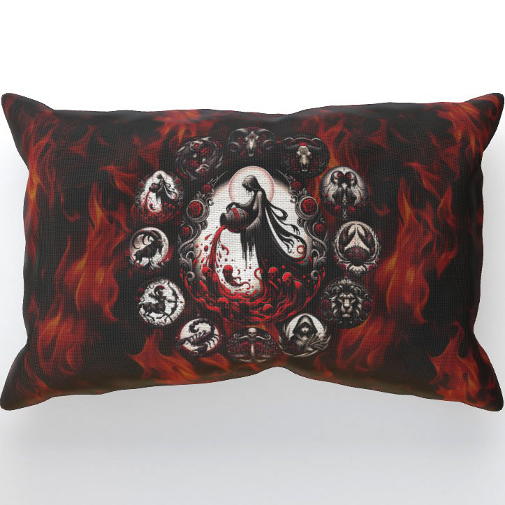 This cushion is part of the Hell's Zodiac collection. Hell's Zodiac shows all the stars signs as seen from hell, with death and fire, it represents true gothic astrology. These cushions are digitally printed giving great detail, made from smooth linen for a luxury feel also including a concealed zip. Completed with a removable hollow fibre cushion insert giving great firmness and comfort.