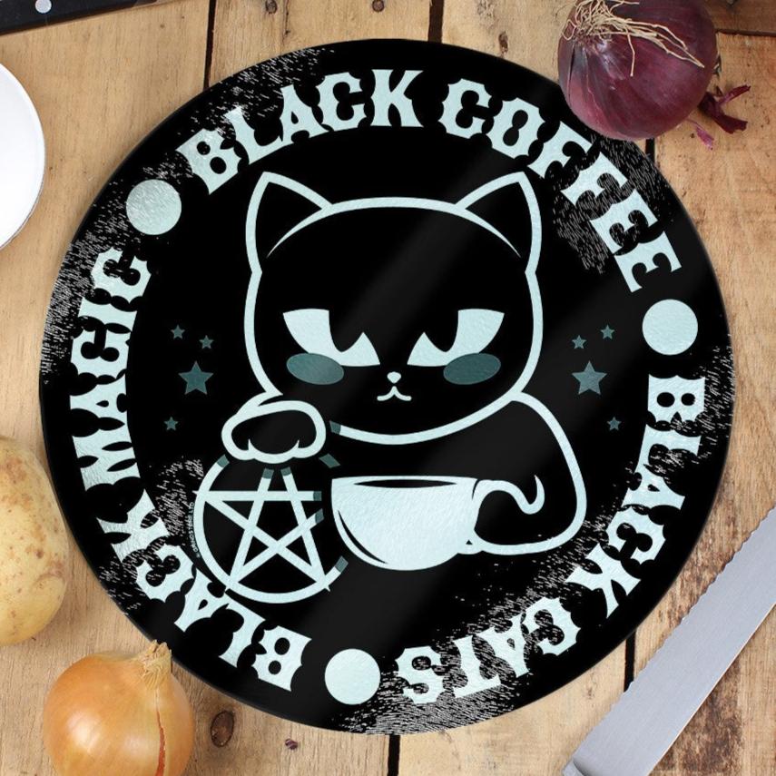 Black Cats, Black Magic, Black Coffee - Circular Glass Chopping Board