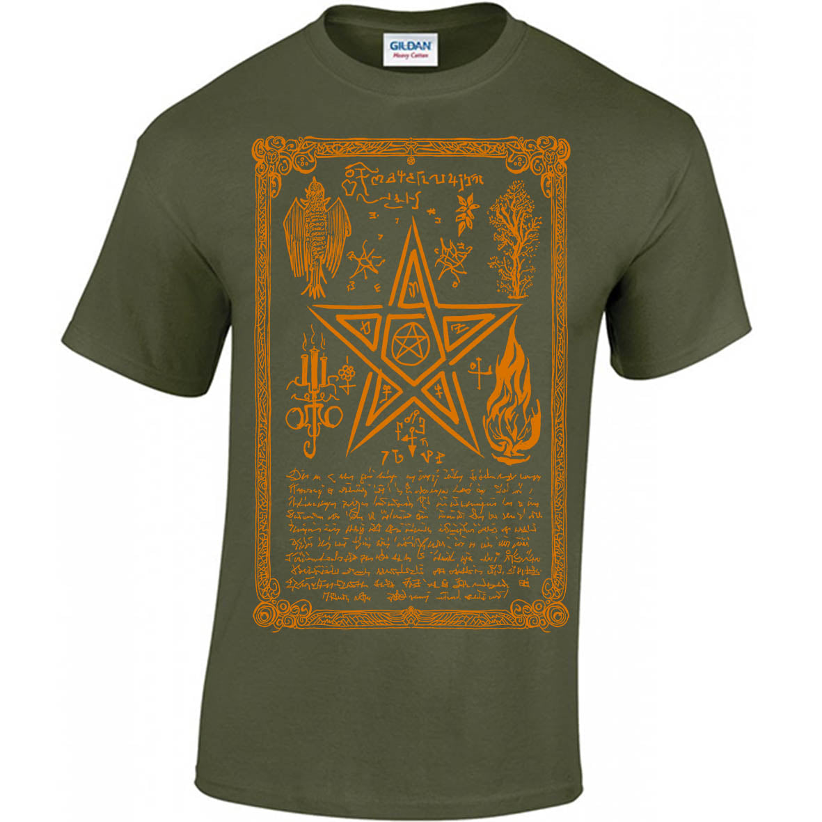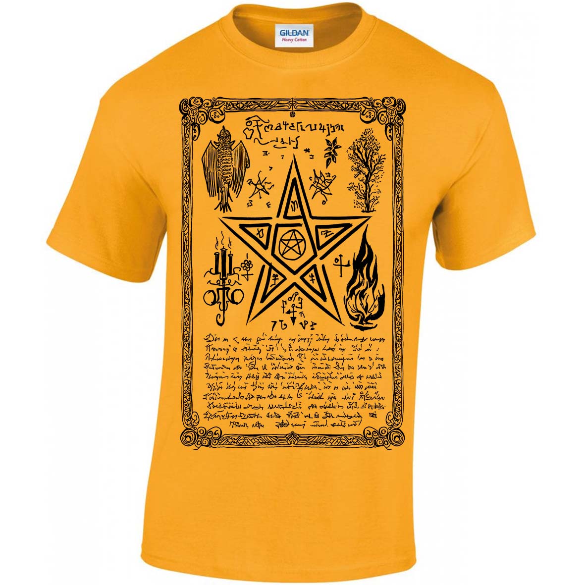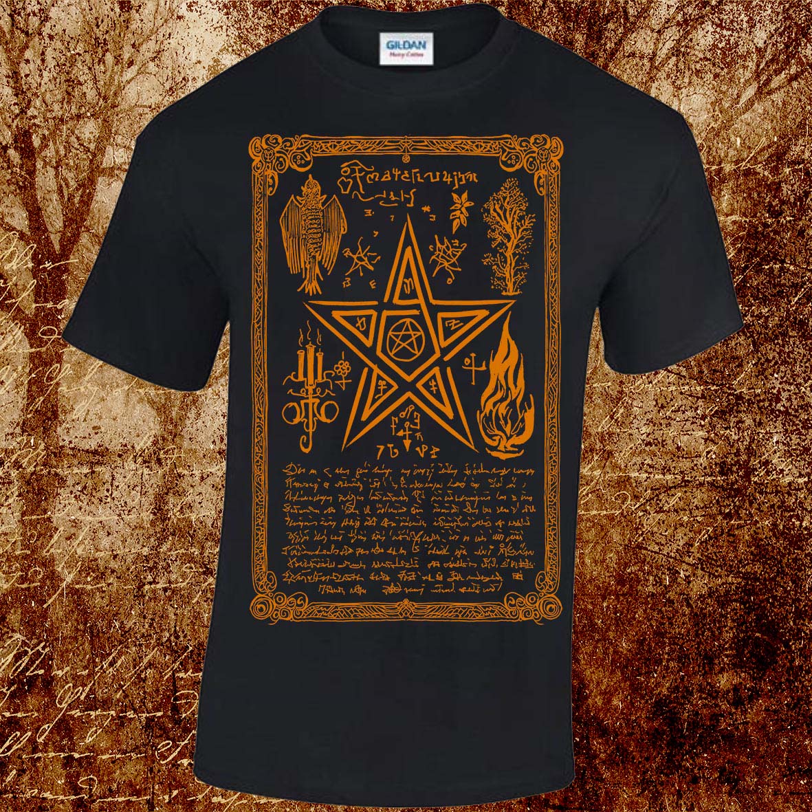 This t-shirt is part of the Book Of Shadows collection, this collection depicts pages of various incantations. Full of supernatural energy and ancient power, the incantations contained within the pages of the Book of Shadows should not used by a novice witch or warlock, as the mystical power could dangerous. Beware the rule of 3 and let your magic sustain you in times of need.