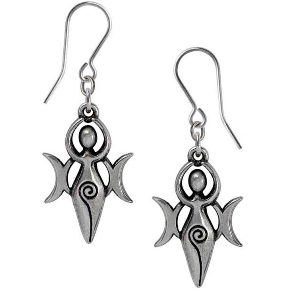 Mother of the earth and of all the gods! Matriarch to the legendary Celtic pantheon, the Tuatha De Danann, Danu, is goddess of fertility and wisdom. Wiccan symbology perfect for day to night wear. Delicate triple Moon, Goddess Symbols perfectly handmade in fine English pewter.