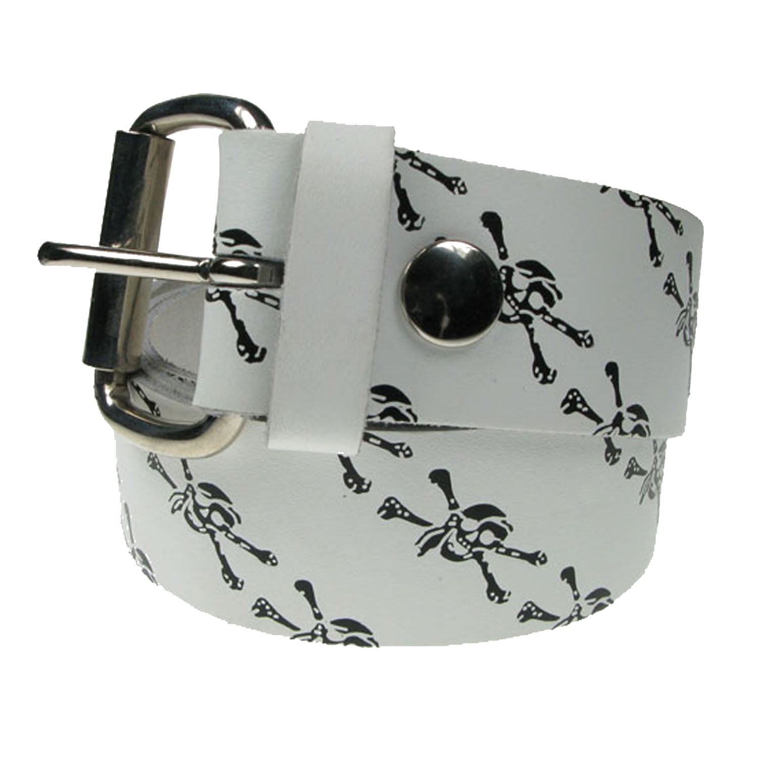 Pirate Skull & Crossbones, Real Leather White, Snap On Belt 1.5 inch/38mm - With Buckle