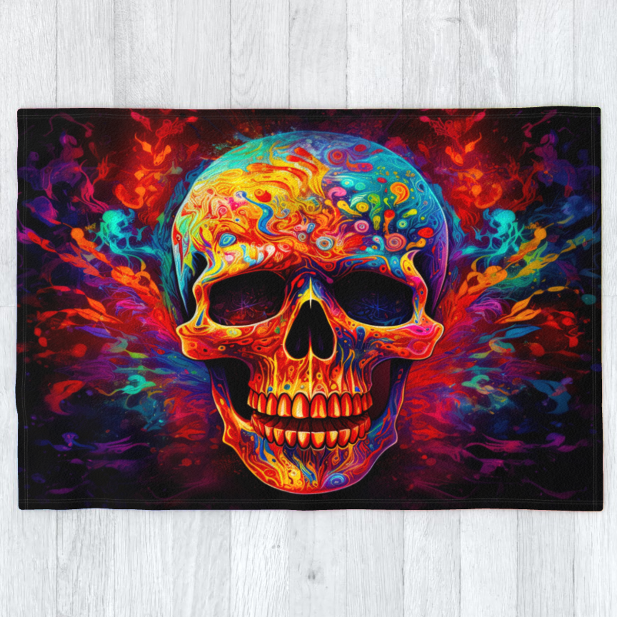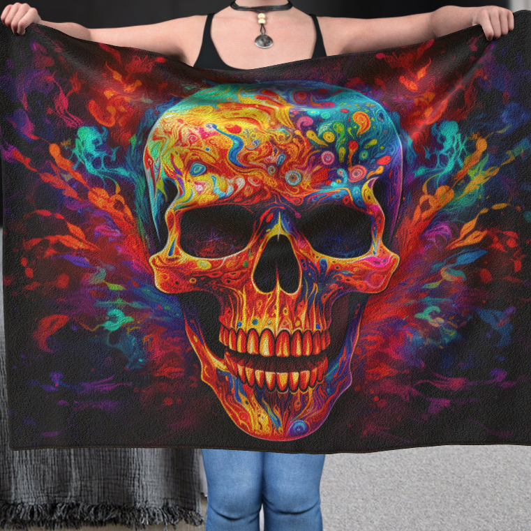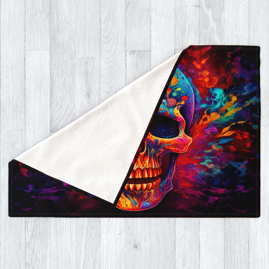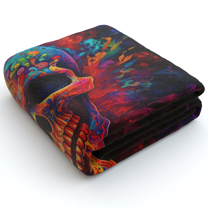 Psychedelic Trippy Skull - Polar Fleece Blanket