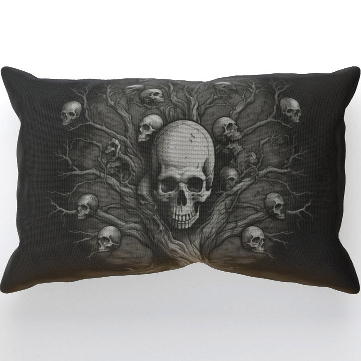 This cushion depicts the Tree of Death found in the shadow world. When you are lost in the shadow world the last place you want to find yourself in gazing upon this terrifying tree, your fear compels a scream to be released as the tree steals your soul. These cushions are digitally printed giving great detail, made from smooth linen for a luxury feel also including a concealed zip. Completed with a removable hollow fibre cushion insert giving great firmness and comfort.