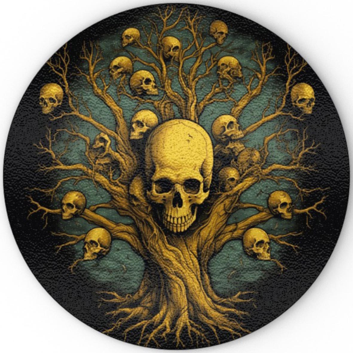 This chopping board depicts the Tree of Death full of collected souls. When you are lost in the woods the last place you want to find yourself in gazing upon this terrifying sight. This tree is covered in skulls and glowing with the souls that have been stolen from the innocent and guilty, for no-one is safe. Beware if you scream around this tree, it will steal your soul forever.