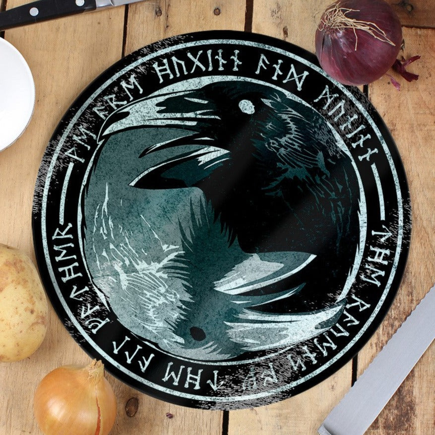 The Ravens Of The All Father - Circular Glass Chopping Board