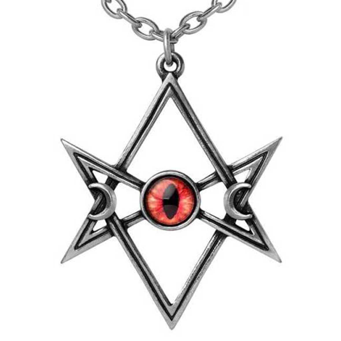 Used in the 16th century by philosophers and hermetic occultists to represent the 'figure of love', and by the infamous Aleister Crowley as the heavenly macrocosm, the entwining of the planetary and elemental forces. A delicate polished hexagram inlaid with a devil eye and decorated with 2 crescent moons. A five petalled flower can be found hidden on the reverse. A unicursal hex like no other before.